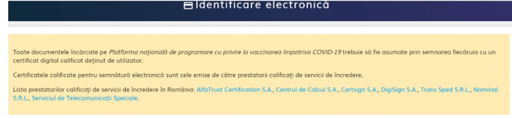 Programarea se poate face doar cu semnătură digitală, care poate fi emisă doar de câteva firme menționate acolo. Costă 175 de lei și necesită aptitudini tehnice”.
