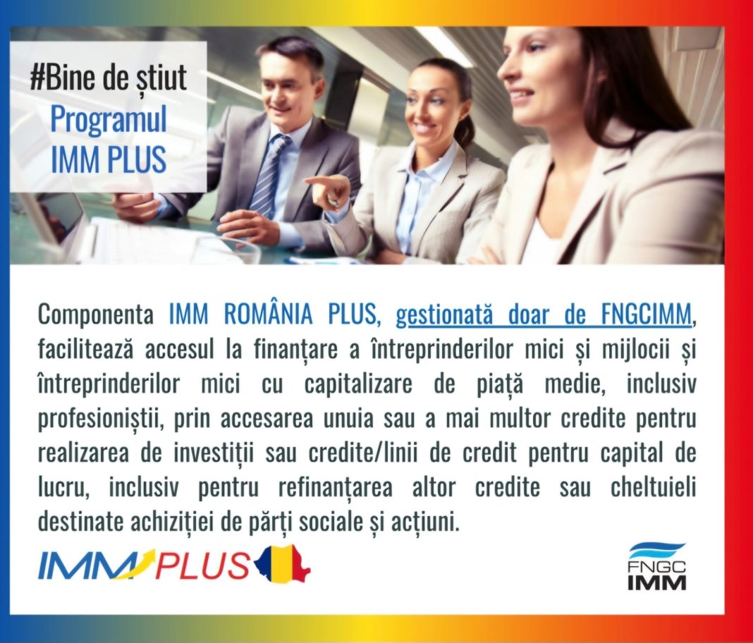 Prin programul IMM PLUS, companiile sunt susținute să obțină finanțare de la bănci, beneficiind de garanții de stat pentru credite de investiții și capital de lucru, cu costuri de finanțare subvenționate.