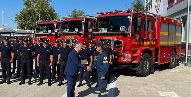 Pompierii români care au stins incendii în Grecia își încheie misiunea. Unitatea de la ISU va fi înlocuită de 25 de pompieri francezi. Ministrul Afacerilor Interne, Lucian Bode, Secretarul de Stat în MAI, Șef al Departamentului pentru Situații de Urgență, Raed Arafat și inspectorul general al IGSU, general-locotenent Dan-Paul Iamandi se întâlnesc cu pompierii români aflați în Grecia pentru executarea misiunilor de stingere a incendiilor de pădure care afectează comunitățile elene.
