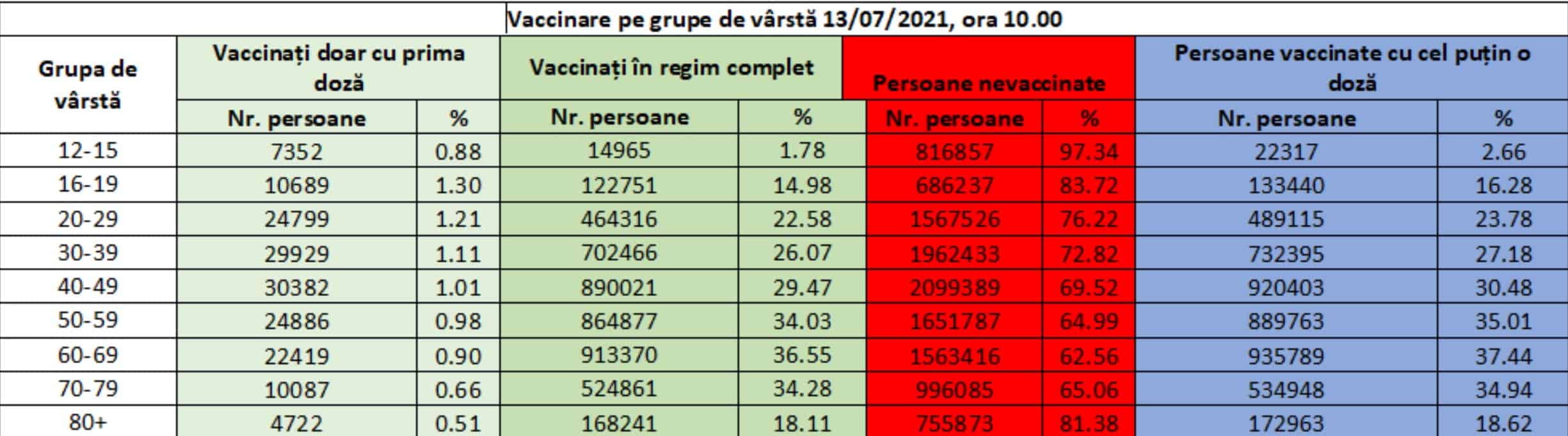 Astfel, 76,22% dintre cei între 20 și 29 de ani nu s-au vaccinat. Procentul este de 72,82% în cazul celor cu vârste între 30 și 39 de ani, de 69,52% la cei între 40 și 49 de ani.