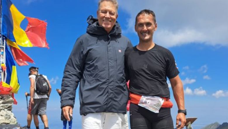 Președintele Klaus Iohannis și soția sa, Carmen, și-au petrecut weekendul la munte. Mai multe imagini apărute pe rețelele sociale îi arată pe cei doi pe vârful Moldoveanu, pozându-se în pantaloni scurți și cu steagul României.