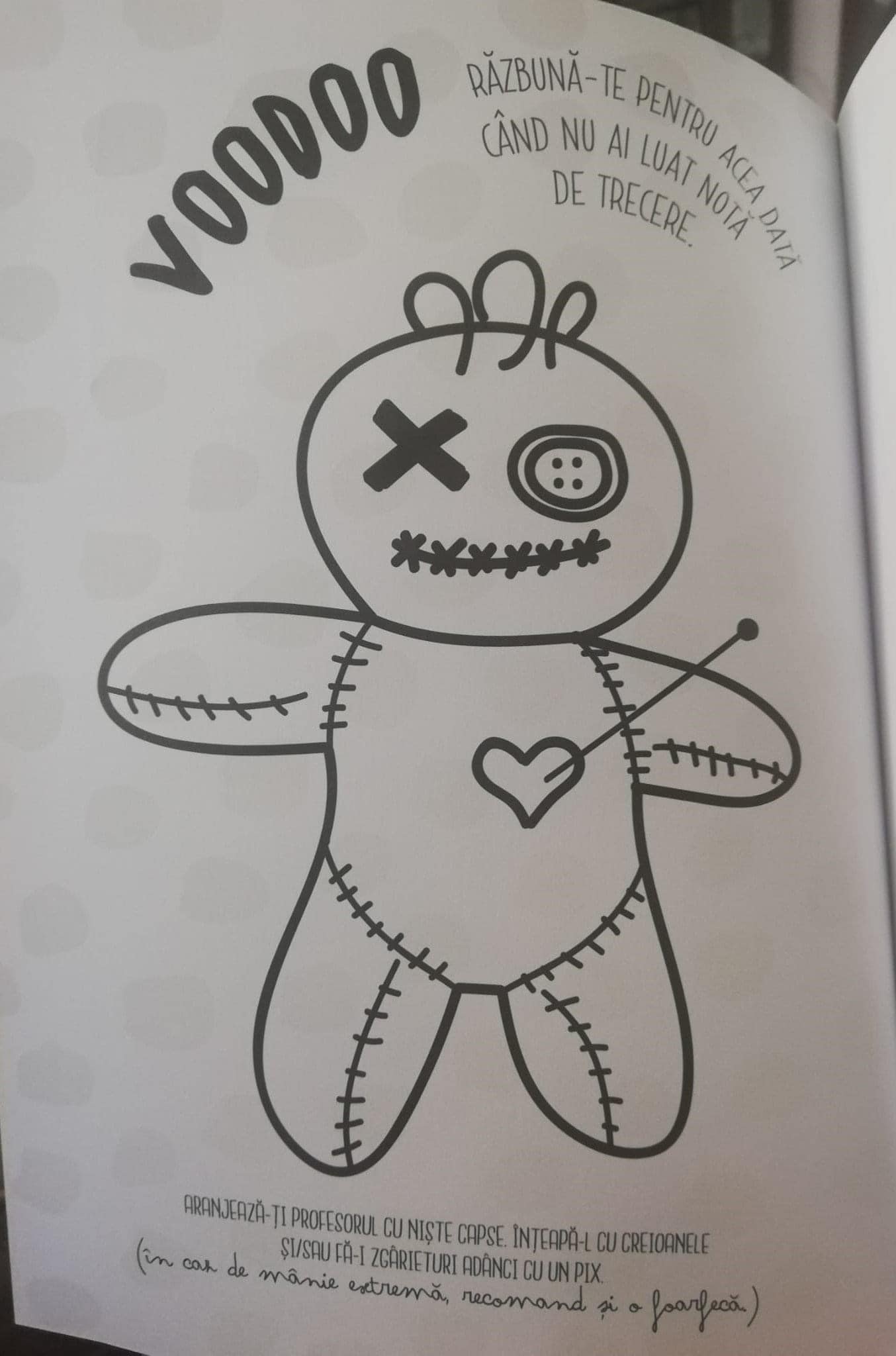 Mesajele controversate au fost prezentate chiar de o profesoară pe pagina de Facebook. Cadrul didactic a atras atenția asupra unor paragrafe din carte care te îndeamnă, printre altele, să dai cu capul de carte și să îți înjuri profesorii, însă exemplele nu se termină aici. Un alt exercițiu constă în simularea unui ritual voodoo prin care elevul se poate răzbuna pe profesorul care nu i-a dat notă de trecere.