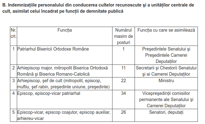 Proiectul de buget pe anul viitor, pus în dezbatere publică pe site-ul Ministerului Finanţelor, prevede o alocare de 751,2 milioane de lei drept sprijin financiar pentru salarizarea personalului de cult. Mai puțin cu 2,1% ca în 2020.