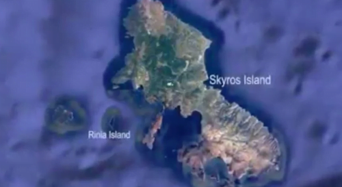 Insula Rinia, care se află în vestul insulei Skyros din Marea Egee. Este plată şi acoperită cu cedri de înălţime moderată. Principalele părţi ale teritoriului sunt straturi de argilă stâncoasă. Apele sale sunt albastre, cristaline şi unice. Aici pot fi construite mici hoteluri, bungalouri, vile pe o suprafaţă de 550.000 de metri pătraţi.