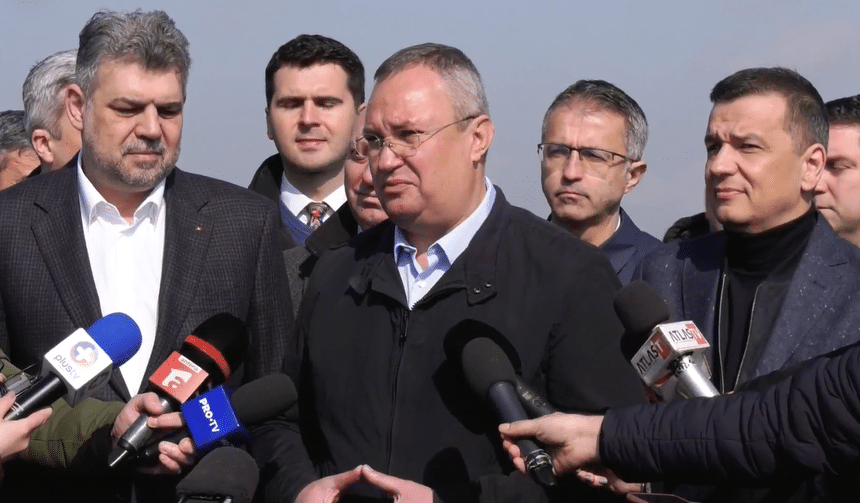 Marcel Ciolacu și Nicolae Ciucă, au vorbit, vineri, în timpul unei vizite pe şantierul autostrăzii A7, în zona localităţii Adjud, despre importanţa stabilităţii politice şi a lucrului în echipă.