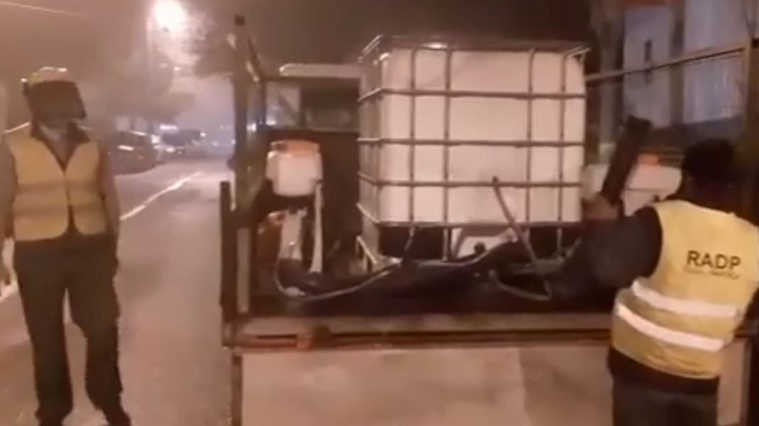 Imaginile surprind angajaţi RADP Cluj care stropesc străzile, iar cei care au distribuit videoclipul sunt de părere că este folosită o substanţă cu scopul de a îmbolnăvi populaţia cu SARS-CoV-2.