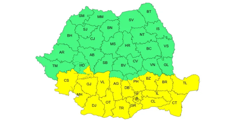 Administrația Națională de Meteorologie a emis și o atenționare Cod galben, valabilă în intervalul 24 decembrie, ora 12 – 25 decembrie, ora 20, pentru Dobrogea, Muntenia, Oltenia și sudul Banatului.