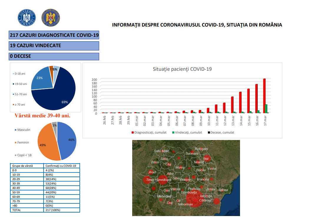 Dintre cei 217 cetățeni care au contactat virusul, 19 sunt declarați vindecați și au fost externați.
