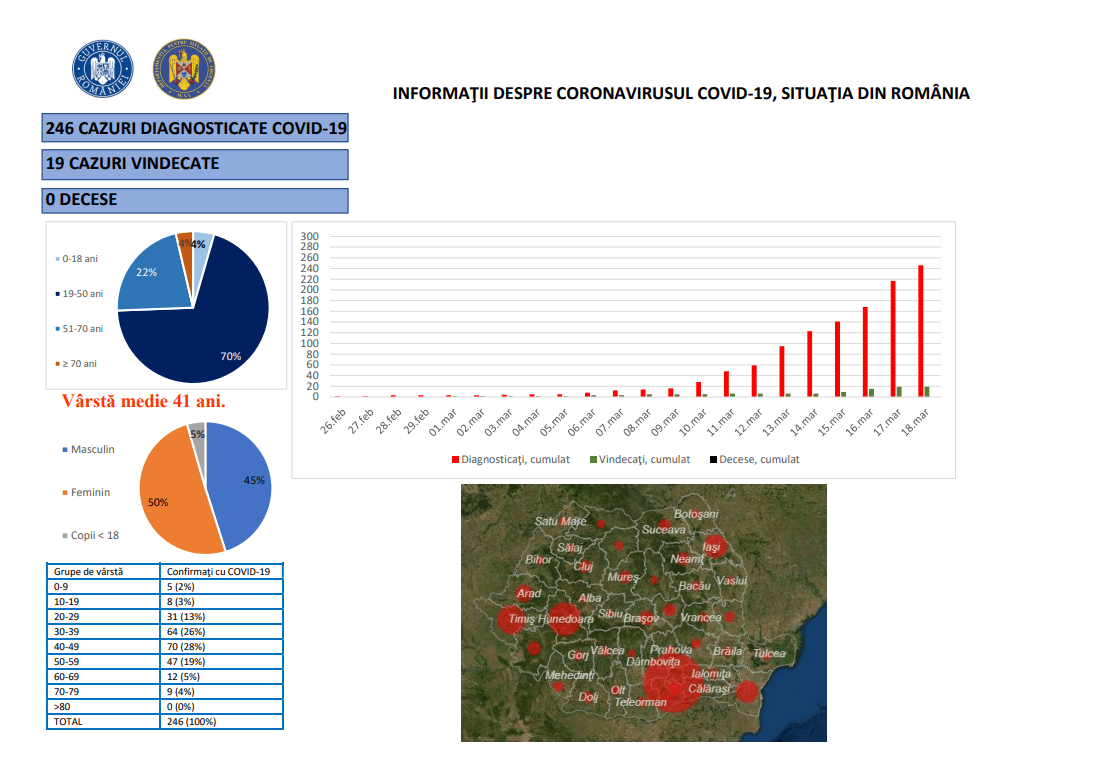 UPDATE: Alte 29 cazuri de coronavirus au fost diagnosticate, miercuri dimineata, numărul total ajungând la 246.