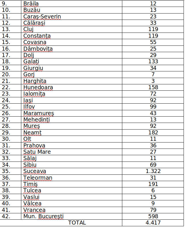 Alte 360 de persoane au fost diagnosticate cu coronavirus în ultimele 24 de ore, bilanțul ajungând la 4.417, majoritatea celor diagnosticați cu COVID-19 – 1.322, fiind în Suceava.