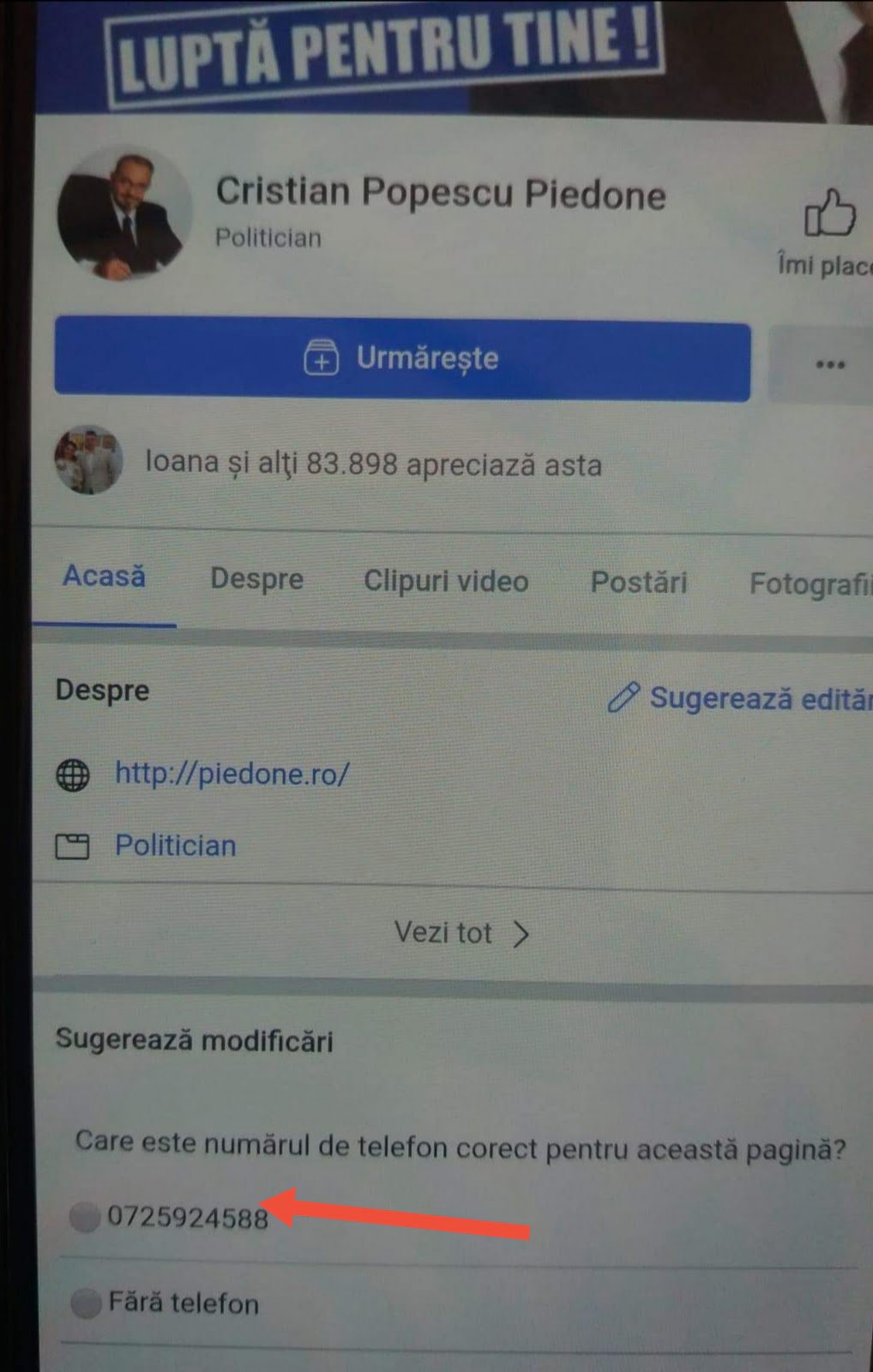După cum vedeți în imaginea anexată, acel număr de telefon apare la sugestiile asociate paginii de Facebook. Și este fix numărul de telefon al doamnei Maria, o persoană neimplicată politic și fără vreo legătură cu primarul.