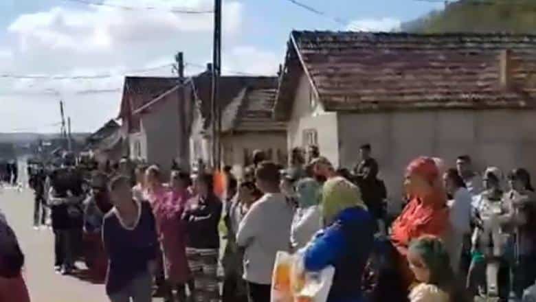 Imagini halucinante în localitatea Jibou, județul Sălaj. Oamenii s-au îmbulzit la ajutoarele sociale împărțite de Primărie, în plină pandemie de coronavirus.