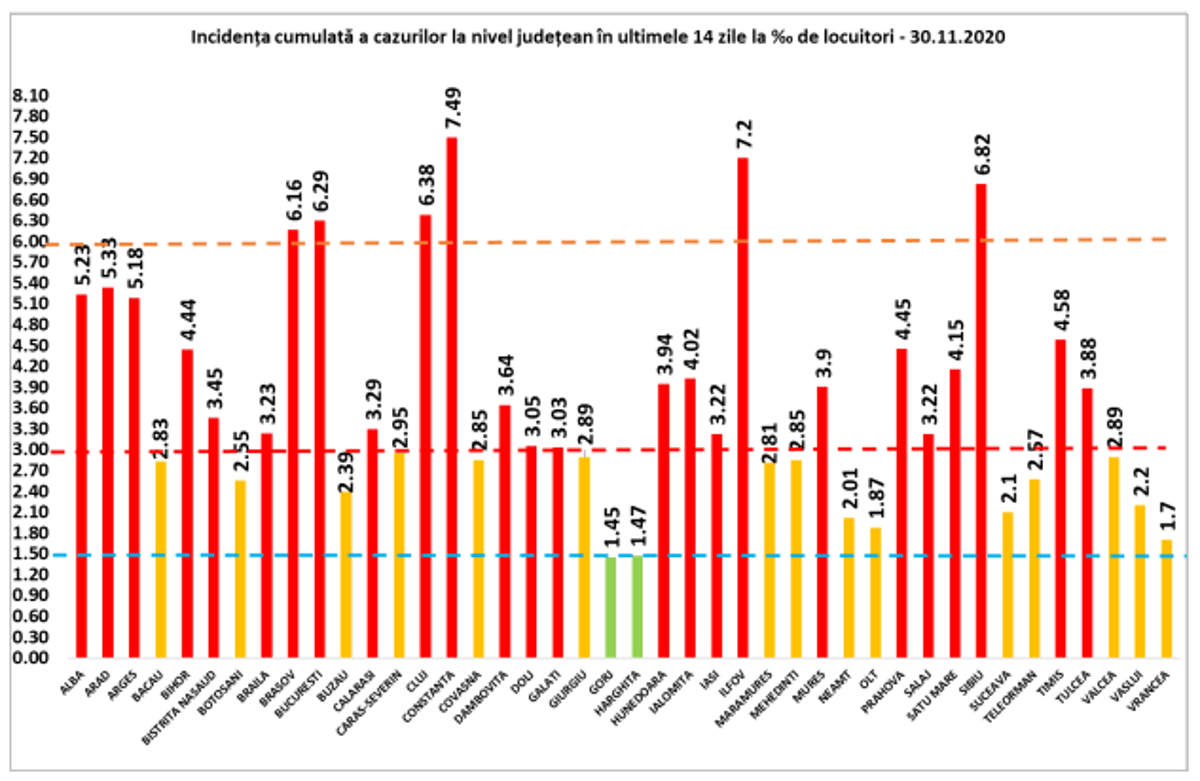 Grupul de Comunicare Strategică a anunţat luni 3.826 de cazuri noi de infectare cu coronavirus. În ultimele 24 de ore, 138 de persoane au decedat. 1.251 de pacienţi sunt internaţi la ATI, acesta fiind un record negativ în țara noastră.