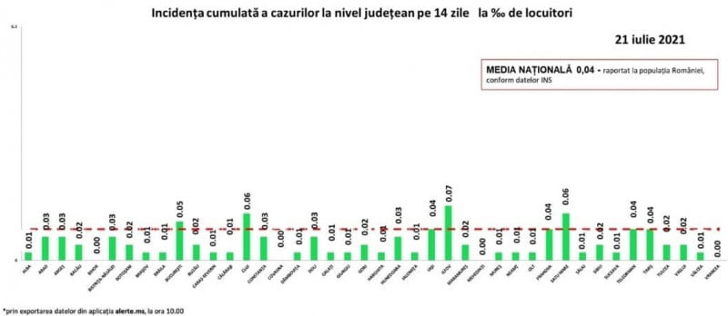 Până astăzi, 21 iulie, pe teritoriul României, au fost confirmate 1.081.875 de cazuri de persoane infectate cu noul coronavirus (COVID – 19).
