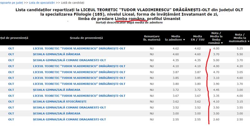 Nu este singurul exemplu. La Liceul Tehnologic Brâncoveanu din Scornicești, la clasa de filologie au intrat elevi cu note de 1,8 sau 3,4 la examenul de română.