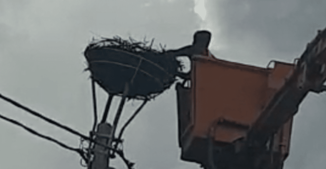 Cuib de barză mutat prin ordin de ministru