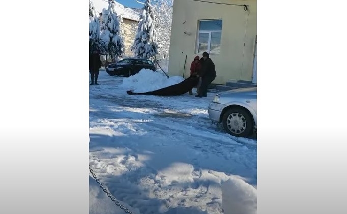 Angajații unei primării din județul Gorj au folosit o pătură pentru a scoate din zăpadă instituția. S-a întâmplat luni, la Primăria Stejari, scrie Gazeta de Sud.