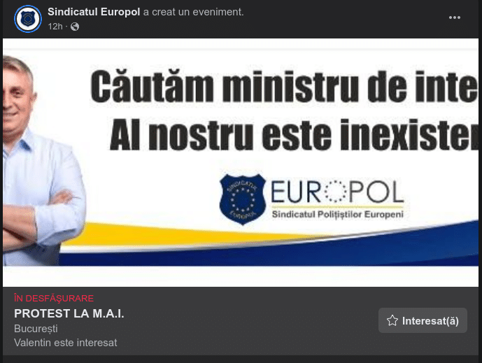 „Gata cu batjocura la adresa poliţiştilor, ne-aţi umilit destul! Am declanşat acţiunile de protest pe termen nelimitat pentru neaplicarea legii salarizării, modificărilor ce vor să fie aduse legii pensiilor militare, deficitului enorm de personal din instituţie şi a situaţiei dezastruoase de la admiterea din şcolile de poliţie”, este descrierea făcută de Europol pe Facebook.