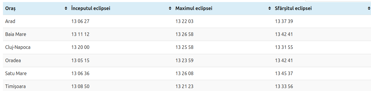 În tabelul de mai jos găsiți date mai exacte pentru momentele principale ale eclipsei.