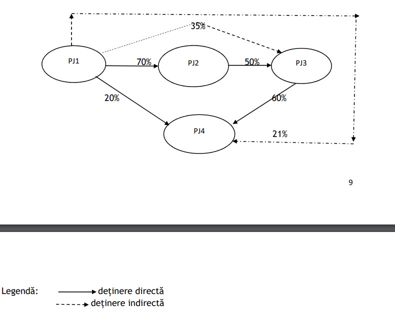Astfel, deținerea indirectă se referă la situația în care o persoană deține o cotă-parte din capitalul social sau din totalul drepturilor de vot la o persoană juridică, prin intermediul unei alte persoane juridice la care persoana respectivă deține titluri de participare sau drepturi de vot.
