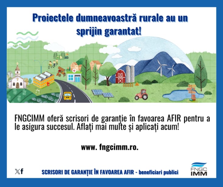Fondul Național de Garantare a Creditelor pentru Întreprinderile Mici și Mijlocii (FNGCIMM) a anunțat disponibilitatea scrisorilor de garanție în favoarea Agenției pentru Finanțarea Investițiilor Rurale (AFIR). Aceste garanții sunt destinate beneficiarilor publici care au încheiat contracte de finanțare nerambursabilă prin Programul Național de Dezvoltare Rurală (PNDR) 2007-2013, PNDR 2014-2020 și Planul Strategic PAC 2023-2027.