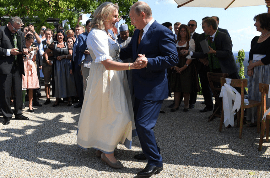 În 2018, ea l-a invitat pe Putin la nunta sa din Alpii austrieci şi a dansat vals cu acesta, atrăgând critici din partea liderilor opoziţiei. După ce a părăsit politica, Kneissl s-a alăturat consiliului de administraţie al Rosneft, o companie petrolieră rusă de stat – post pe care l-a părăsit între timp – şi a devenit o participantă obişnuită la emisiunile RT, postul internaţional de propagandă al Rusiei.