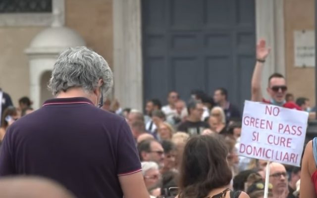 Cei care s-au adunat în Piazza del Popolo, în centrul Romei, au strrigat „Fără permis verde!” şi „Libertate!”. Au fost aproximativ 1000 de persoane.