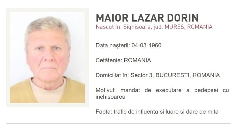 „Nimeni nu e mai presus de lege! Fugarul Dorin Lazăr Maior, fost deputat (2000-2004) şi fostul preşedinte al Blocului Naţional al Revoluţionarilor, în scurt timp va fi adus din Italia în România, pentru a executa o pedeapsă privativă de libertate. În noiembrie 2013, acesta a fost condamnat definitiv la o pedeapsă de 7 ani închisoare pentru săvârşirea infracţiunii de şantaj. A fugit şi la acel moment din ţară, însă a fost prins şi a executat pedeapsa, în 2020 fiind eliberat condiţionat. La data de 19 iulie 2023, acesta a fost condamnat definitiv la o pedeapsă de 2 ani şi 1.186 zile de închisoare pentru săvârşirea infracţiunii de cumpărare de influenţă. Pe numele lui a a fost emis un mandat european de arestare”, a explicat Alina Gorghiu, potrivit unui comunicat de presă al Ministerului Justiţiei.