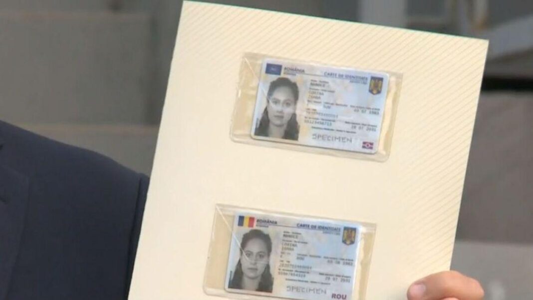„Și, revenind la simbolurile naționale, este vorba de blancheta pentru cartea de identitate simplă, cea care este fără cip, avem simbolurile naționale: stema României, drapelul și pe spate este un element în relief care reprezintă primele două versuri din imnul național.
