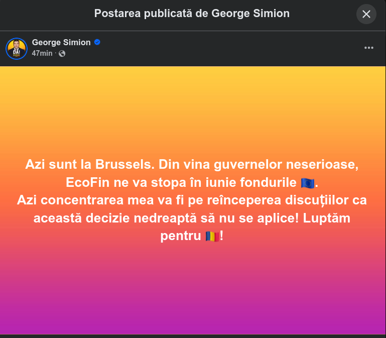 Azi concentrarea mea va fi pe reînceperea discuțiilor ca această decizie nedreaptă să nu se aplice! Luptăm pentru !”, afirmă George Simion, joi, într-o postare pe Facebook.