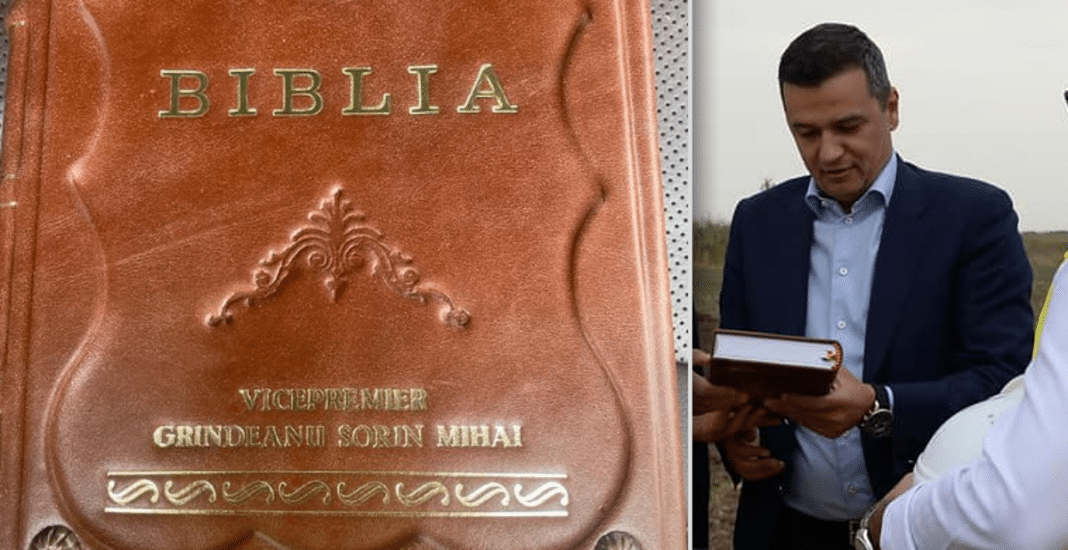 Ministrul Transporturilor, PSD-istul Sorin Grindeanu, are o Biblie cu numele său inscripționat pe coperată. Sfânta Scriptură i-a fost dăruită lui Grindeanu de  Mitropolitul Teofan al Moldovei și Bucovinei, via șeful PSD Iași, senatorul Maricel Popa.