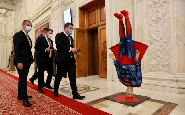 Social-democraţii au adus în faţa sălii de plen a Camerei Deputaţilor, înainte de votarea moţiunii de cenzură de marţi, o machetă a lui Superman. Este o ironie la adresa lui Florin Cîțu care, în luna septembrie, a publicat pe contul personal de Instagram un videoclip din filmul „Superman Returns”, în care faţa actorului a fost înlocuită de cea a premierului.