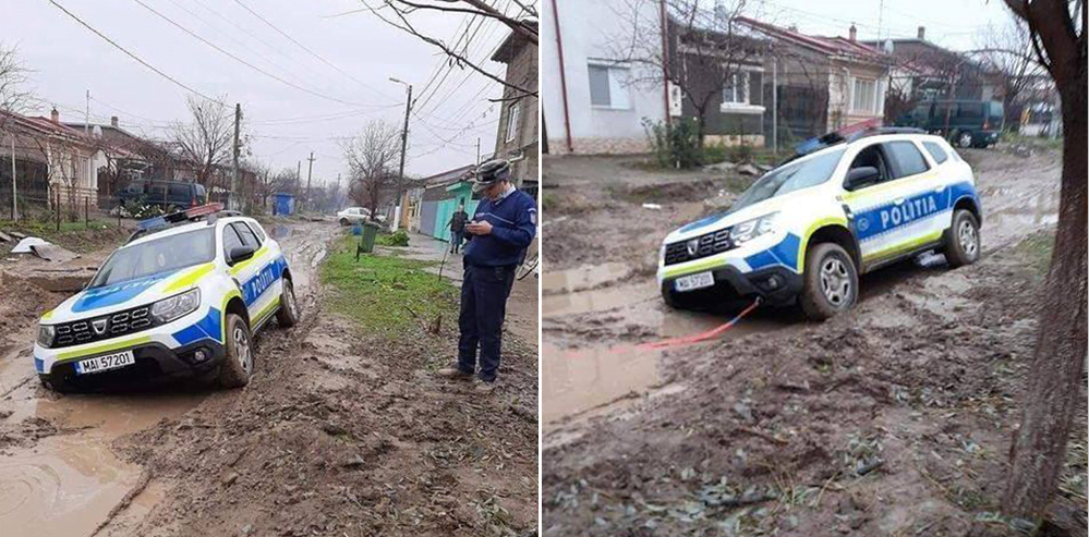 Un echipaj al Poliției Române a avut, recent, parte de un incident demn de filmele de comedie. Mai exact, o mașină a MAI a rămas împotmolită într-un cartier din Brăila. Localnicii au fost cei care le-au dat o mână de ajutor agenților, scrie Monitorul de Galați.