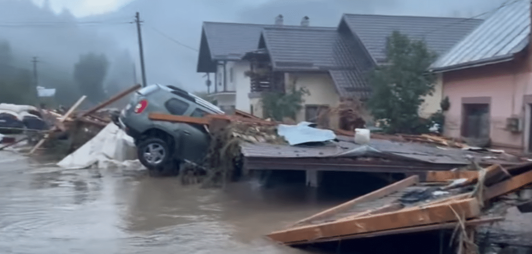 Inundații în România – un mort, 900 de evacuați, mașini distruse, drumuri rupte