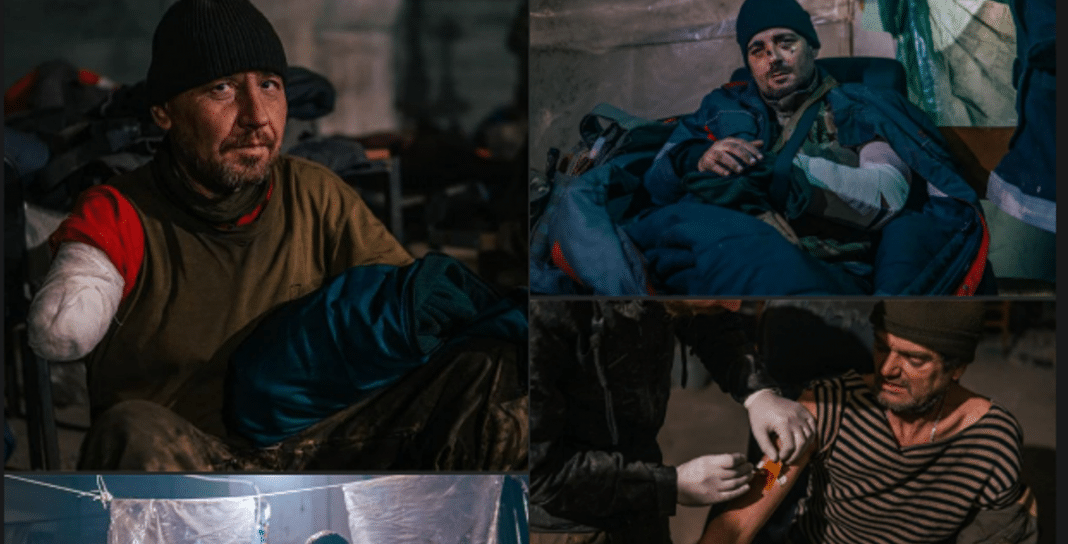 Soldații pe care îi vedeți în fotografie la uzina Azovstal, cu răni grave, au apărat Ucraina cu prețul propriei sănătăți.”