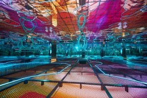 „Instalația a pornit de la această idee oarecum simplă că întregul e mai mult decât suma părților, iar împreună înseamnă mult mai mult decât cumulul individualităților”, explică Adrian. „E ceva ce mă interesează foarte mult și am mai experimentat în diferite variante. Instalația de anul acesta continuă și o traiectorie de cercetare personală legată de materialitatea apei. Sunt fascinat de modul în care viața e legată atât de strâns de apă și cât de conectați suntem între noi și cu tot ce ne înconjoară. Am mai experimentat în această zonă și în instalația The Bridge, care a reprezentat România la Cvadrienala de scenografie de la Praga. Așa că SynergyX continuă și adâncește o căutare foarte personală.”