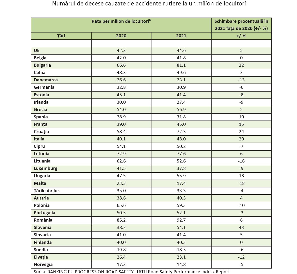 România rămâne pe primul loc în UE la numărul de dece cauzate de accidentele de pe șosele.