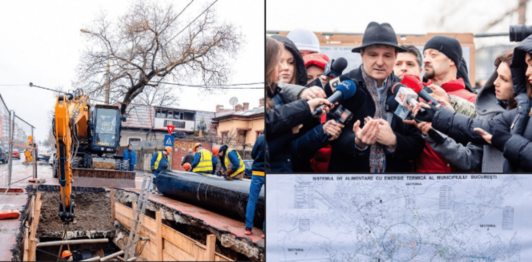 “Bucata de reţea Ferentari – 13 kilometri am început-o în mai 2021. Se face probă de presiune pentru 1500 de metri din care 1200 reţea magistrală, 300 de metri racorduri, reţeaua principală diametrul de 600. În momentul de faţă suntem la 11 din 13 kilometri aici şi până la undeva la 15 aprilie o să terminăm lucrarea asta. Această bucată de 13 kilometri alimentează 16 puncte termice, cam 10.000 de apartamente. Oamenii simt îmbunătăţirea”, a explicat primarul Capitalei într-p postare pe Facebook.