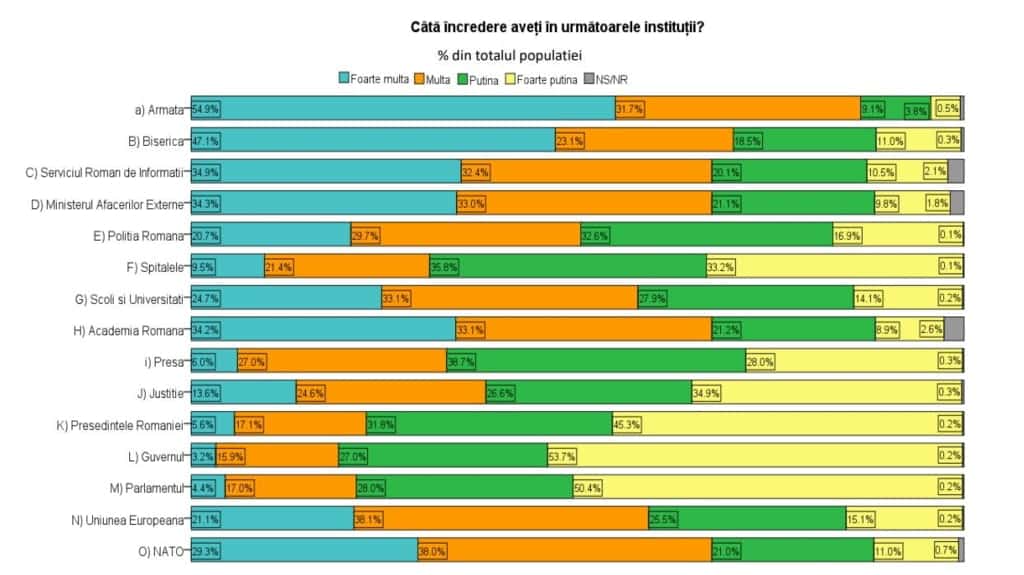 Mai puțină încredere decât șeful Statului, în rândul cetățenilor, îl au Parlamentul și Guvernul.