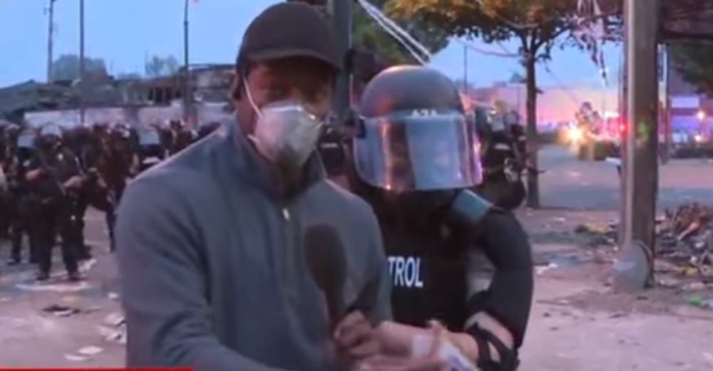 Inițial, a fost luat în custodia poliției doar reporterul CNN Omar Jimenez. Ulterior și colegii lui, un producător și un cameraman, au fost încătușați.