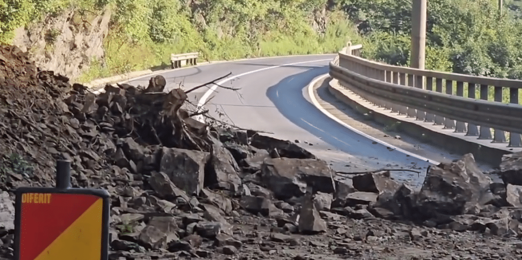 Lucrări pe Valea Oltului – Căderi de bolovani pe șosea