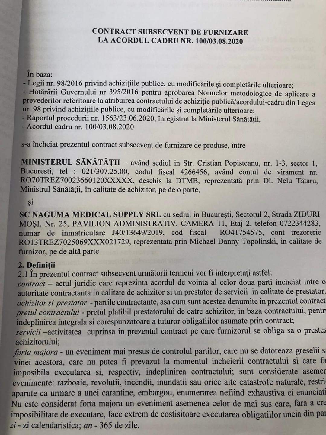 Fostul premier, Victor Ponta, a postat ieri pe pagina sa de Facebook o copie a acestui contract. El se leagă de prețul imens al acestuia, peste 78 de milioane de lei. Ceea ce este adevarat, însă liderul Pro România a scăpat din vedere exact paragraful flagrant! Un aliniat mai jos, la “Durata contractului” se precizează că “Prezentul contract subsecvent este de 45 de zile de la semnarea acestuia de ambele părți”. Dicolo de exprimarea incorectă din punct de vedere gramatical (în sintagmă lipsește un “către”), această frază are un caracter penal. Așa cum presa a relata de la bun început, Naguma a câștigat licitația datorită timpului de livrare asumat, plasat anume în caietul de sarcini pentru a fi un criteriu important de punctaj. De la cele 7 zile asumate, firma lui Topolinski primește acum prin contractul subsecvent un termen de livrare de 45 de zile!