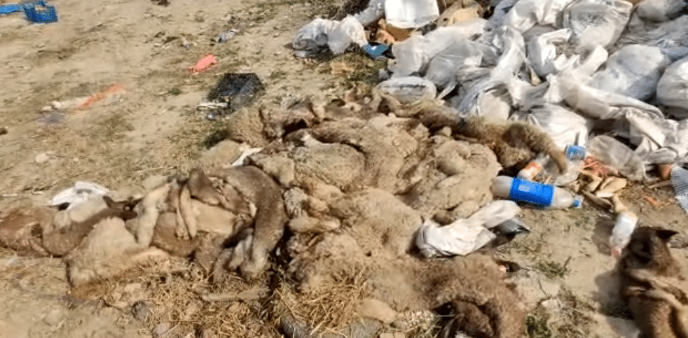 El semnalează că în judeţul Ialomiţa, „sute de animale moarte sau piei de ovine sunt aruncate pe câmp alaturi de deşeuri”.