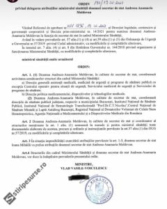 În document se precizează că Andreea Moldovan semnează în numele și pentru ministrul Sănătății toate documentele elaborate de acesta, precum și ordinele și instrucțiunile prevăzute la articolul 57 alin. (1) din OUG nr. 57/2019, cu modificările și completările ulterioare.