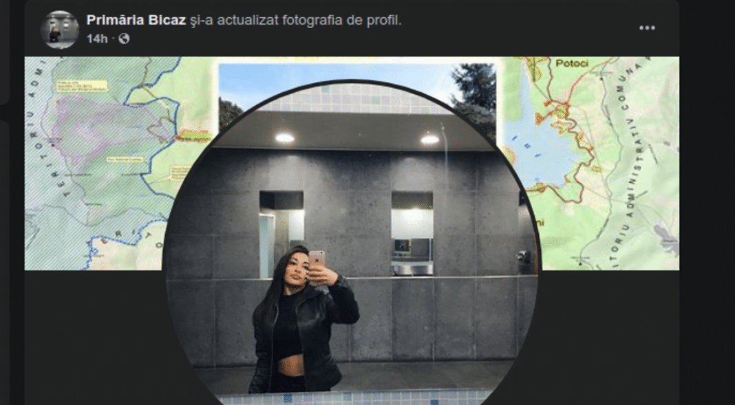 Fotografia de profil a paginii de Facebook a primăriei Bicaz a ajuns virală pe internet. Imaginea, acutalizată vineri noaptea, 11 martie, arată o tânără care își face un selfie în oglinda unei toalete.