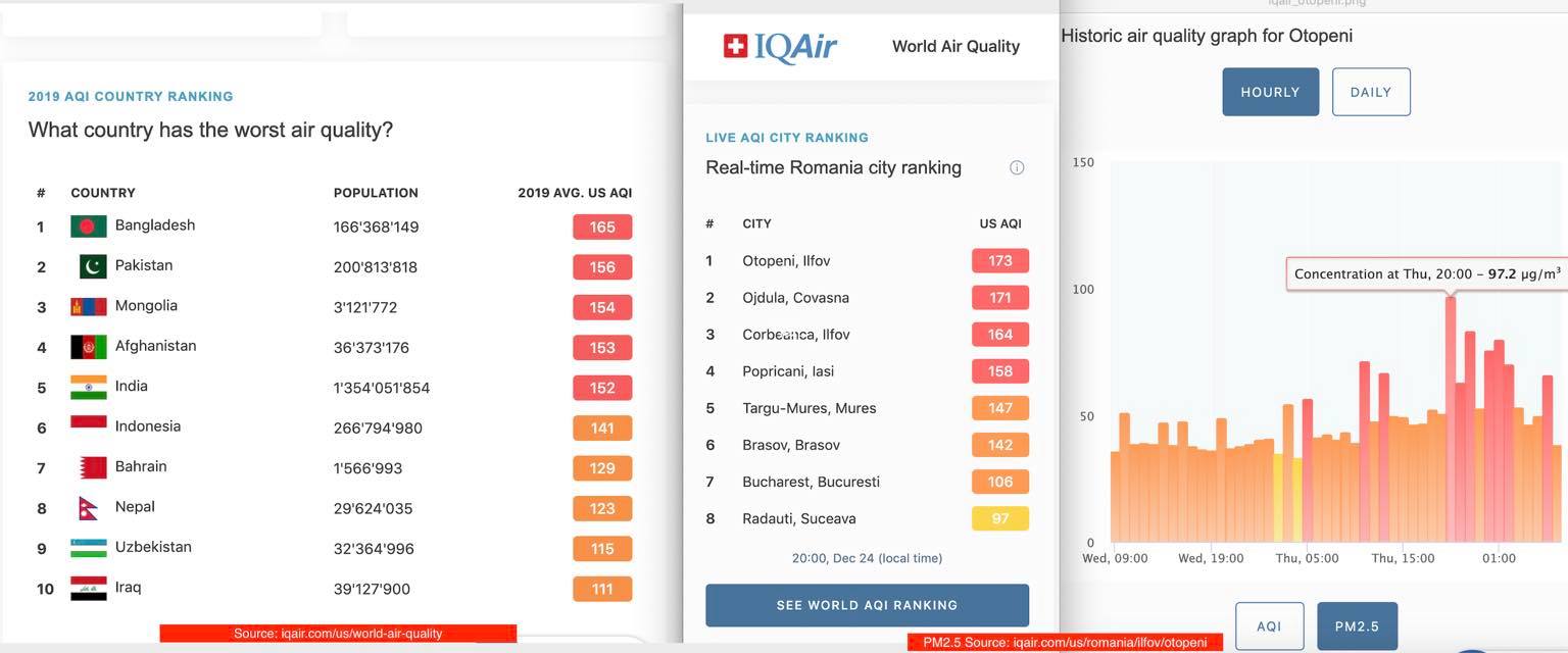 Toate website-urile care monitorizeaza calitatea aerului aerlive.ro, airly.org, iqair.com arată depășiri enorme ale poluării care au început în jurul orelor 21.00 în data de 24.12.2020 și au crescut în următoarele ore din noapte”, scrie sursa citată.