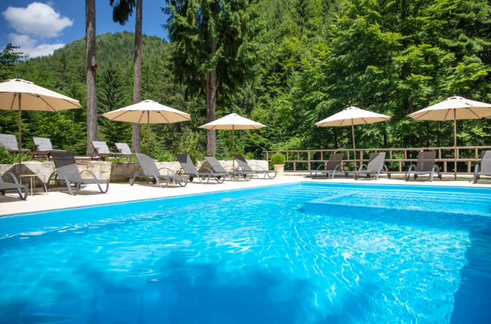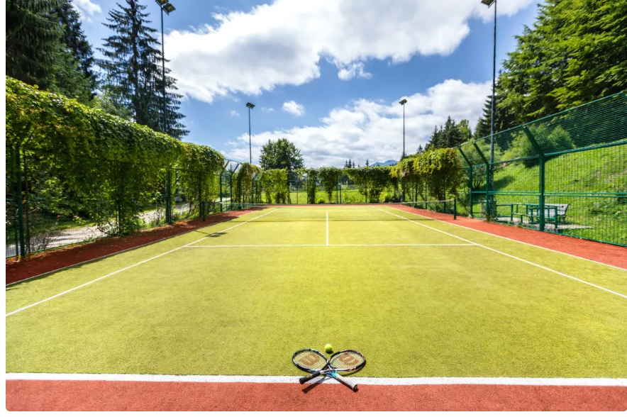 Domeniul dispune de o piscină exterioară, teren de tenis iluminat nocturn, grădină zen, fitness, foișor, terase panoramice și spațiu de joacă pentru copii.