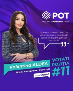 În premieră, din noul Parlament al României va face parte și o femeie care-și vinde trupul pe internet. Este vorba de Valentina Aldea, de 36 de ani, care a candidat pe listele Partidului Oamenilor Tineri (POT) la Senat, partid susținut de candidatul Călin Georgescu, care s-a calificat în turul II al alegerilor prezidențiale.