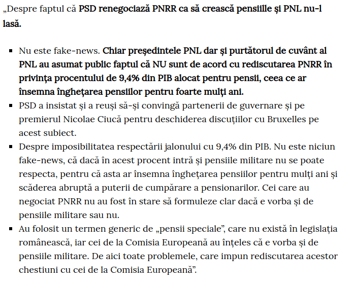 Activul formațiunii conduse de Marcel Ciolacu este și învățat cum să îi atace pe liberali: „PSD a spus că nu se poate vorbi de creșterea vârstei de pensionare cât timp nu crește și speranța de viață. Cei de la PNL spun că e vorba de o creștere OPȚIONALĂ, ceea ce este inconsistent pentru că și acum fiecare persoană poată opta să muncească oricât de mult poate după vârsta de pensionare. Termenul de OPȚIONAL a fost folosit în contextul în care oamenii care vor să lucreze peste această vârstă sunt OBLIGAȚI să aleagă între pensie și salariu”.
