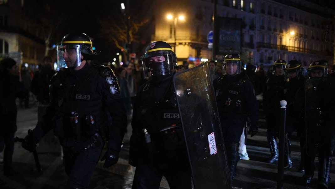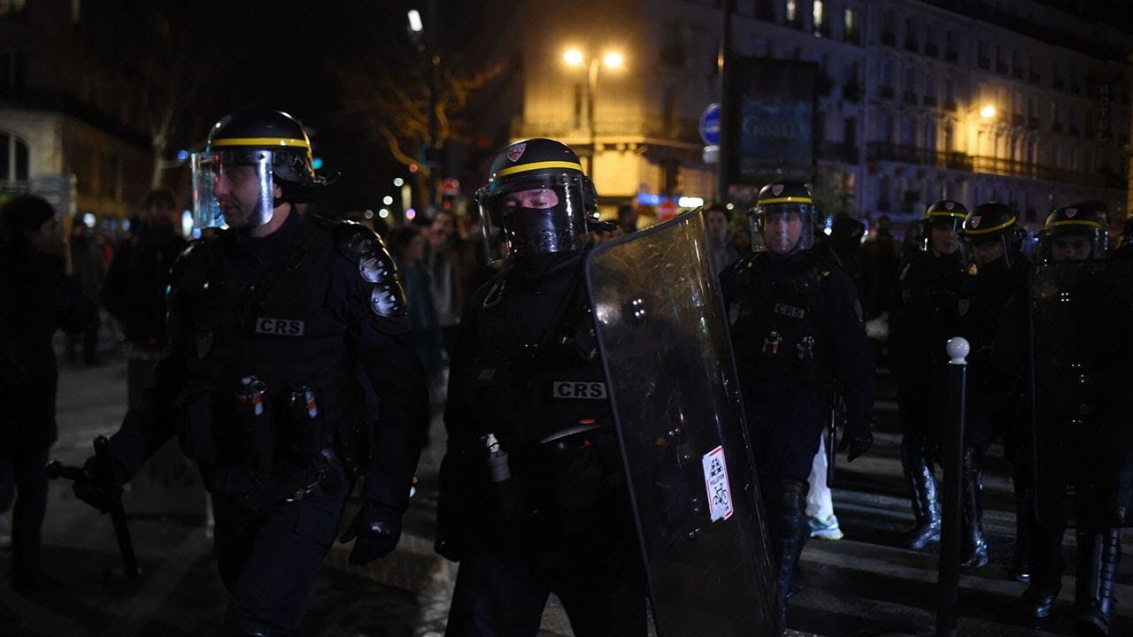 O mașină de poliție din Lyon a fost atacată cu artificii. Polițiștii au lansat gaze lacrimogene și i-au dispersat în forță pe manifestanții adunați în Piața Place de la Republique din Paris.